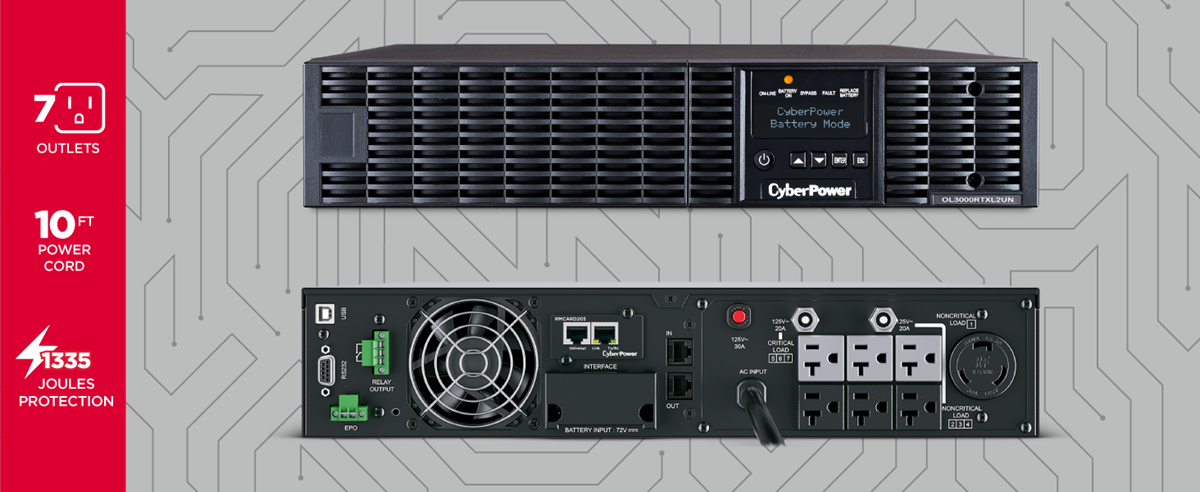 Displays UPS status data and configures operating settings from up to 10 ft. away (cable not included). LCD allows configuration of IP address settings with the pre-installed RMCARD205 network card.