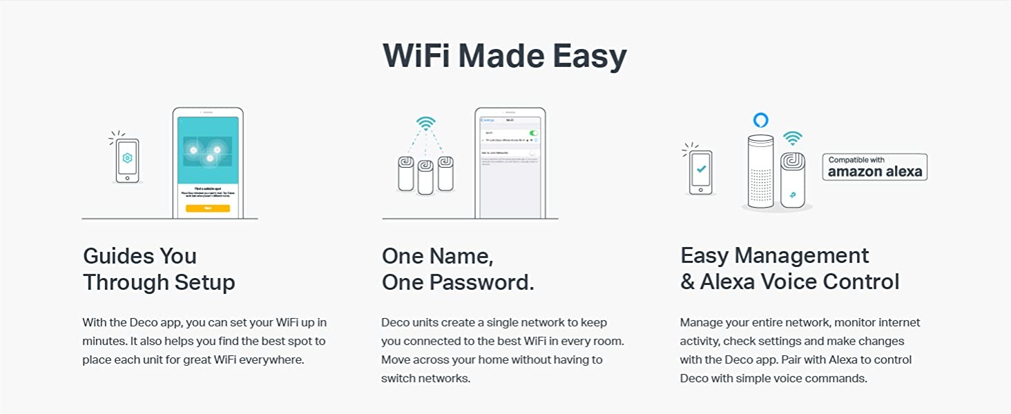 Get fast and seamless WiFi throughout your home. 3 Deco M4 units work together to create a single network that provides coverage up to 5,500 sq. ft, so you can keep your devices connected even as you move around. Enjoy smooth streaming and gaming from your bedroom to your backyard with no additional work.