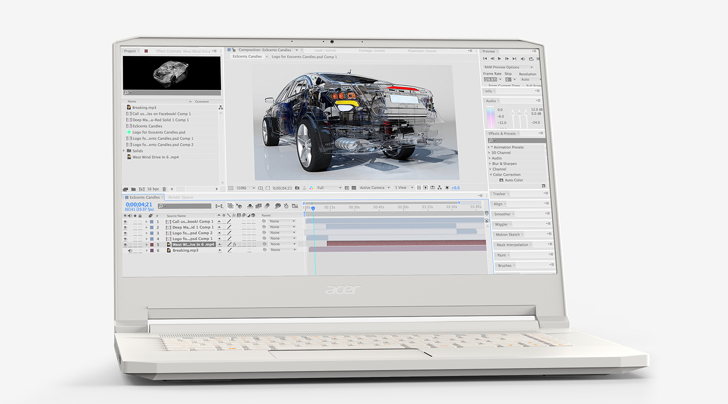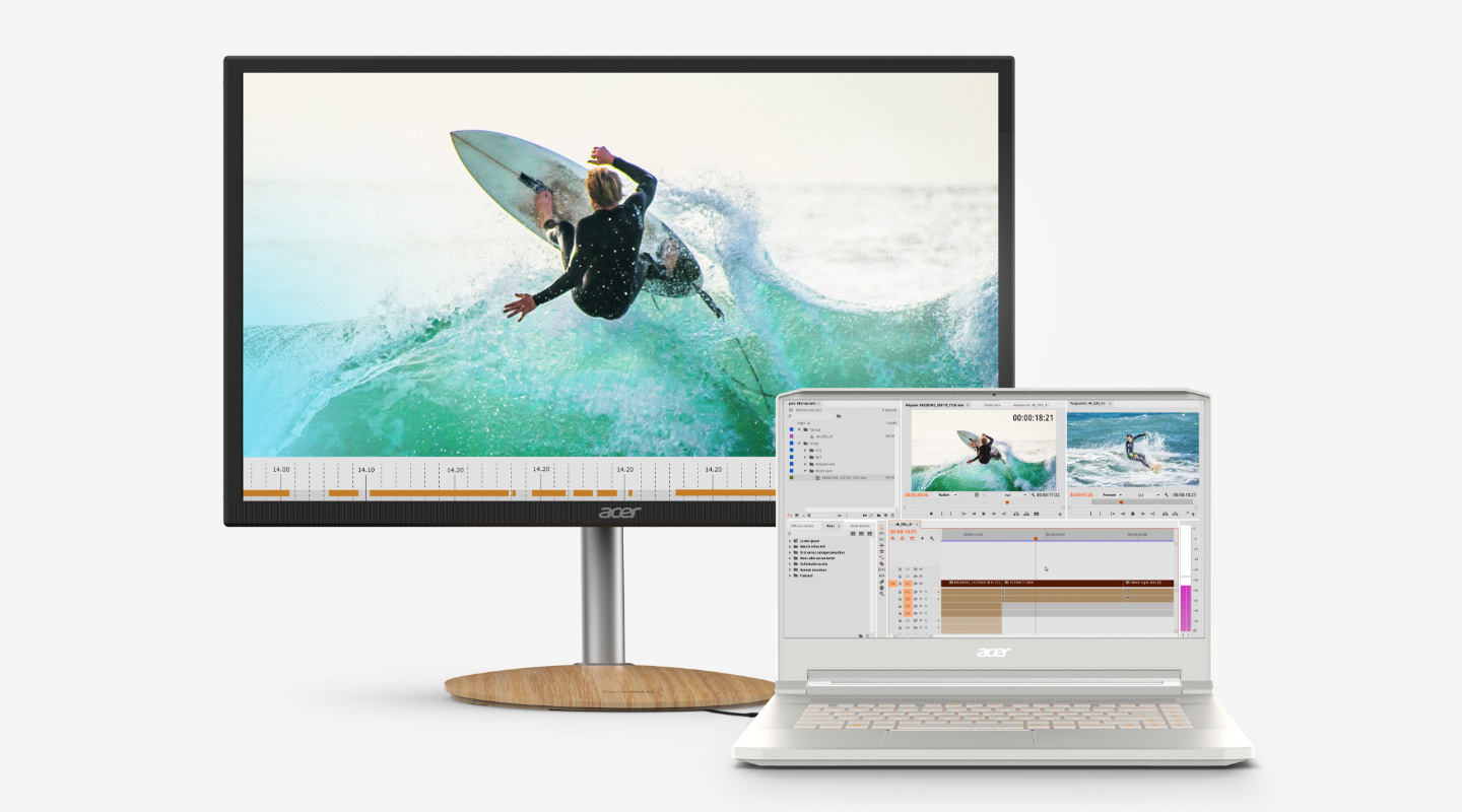 Whether you’re designing in 3D or 2D, you’ll appreciate the ConceptD 7’s speed and multi-tasking prowess. The chassis houses a 9th Gen Intel® Core™ i7 processor2, an NVIDIA® GeForce RTX™ 2080 with Max-Q design2, up to 32GB of DDR4, and up to 1TB2 PCIe NVMe SSDs in Raid 02. Get faster real-time preview while video editing, or smoothly export and render up to 6K video files and simple 3D designs.