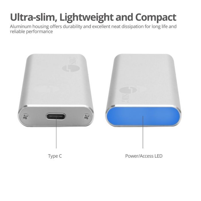 This ultra small enclosure easily adds fast PCIe NVMe SSD storage to Windows or Mac computers through USB 3.1 Gen 2 Type-A or Type-C ports