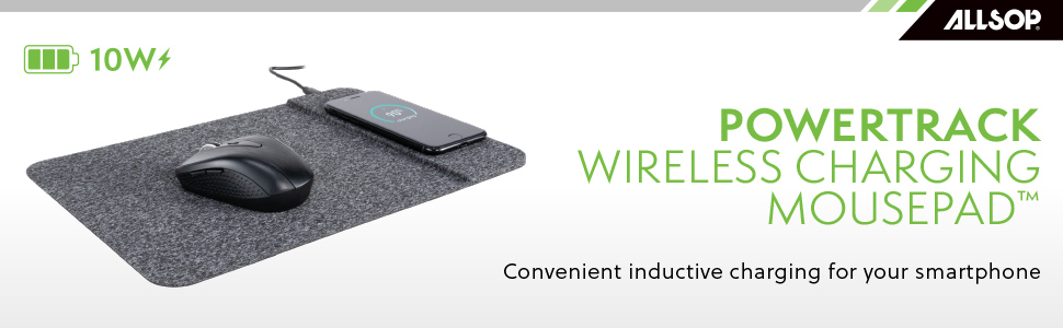 The Allsop PowerTrack Wireless Charging Mousepad provides an easy and convenient way to charge your wireless devices with the added benefit of an accurate and comfortable mousing surface. All with the quality your’d expect from decade of Allsop experience and millions of mousepads sold. Simply place the device on the wireless charging area to begin charging. Also compatible with Apple Airpods 2 (with compatible wireless charging case).