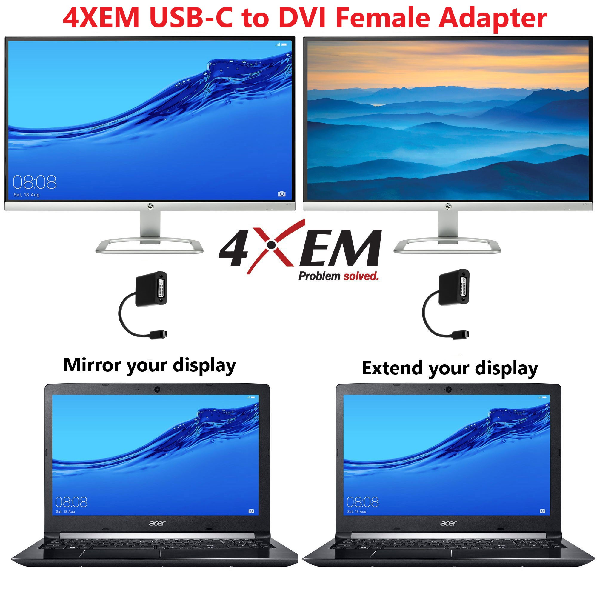 4XEM's USB-C to DVI Adapter - black 20cm, 1920X1200-USB Type C (Thunderbold 3 Compatible) to DVI Converter for MacBook Pro, Dell XPS 13/15, HP Spectre x360, Lenovo Yoga 910 & More,