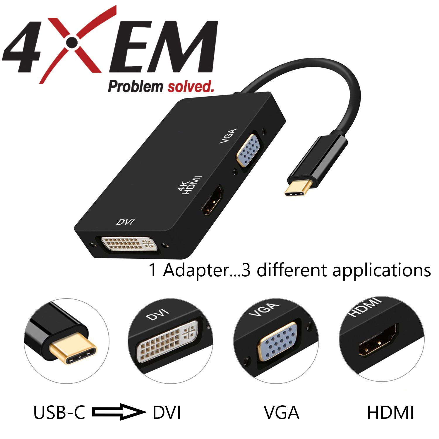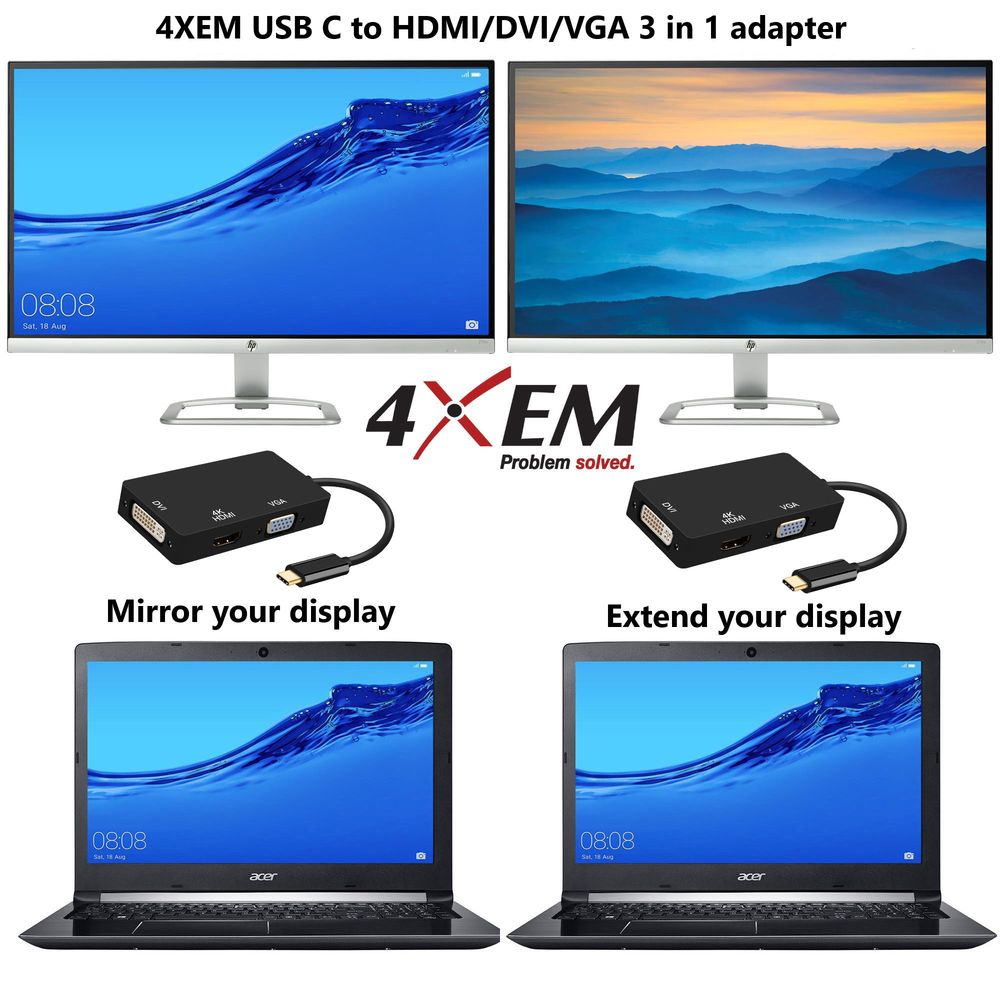 4XEM’s USB C multiport adapter offers a portable solution for connecting your USB Type C laptop to a VGA, HDMI or DVI monitor, screen or projector. This convenient multiport video adapter will ensure you deliver a professional presentation with maximum picture quality. With our 3-in-1 USB C multi video adapter, you can avoid the hassle of carrying different adapters and converters for different displays. With VGA, HDMI and DVI output options, you can connect your laptop to virtually any display, making it the perfect travel companion for professionals on the go.