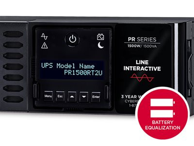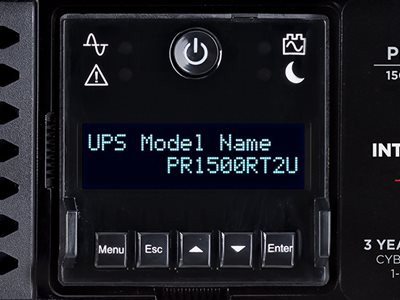 The LCD screen tilts and rotates to provide better view angles depending on how the UPS is mounted. Provides information for the UPS status, UPS setup control management, and testing options.