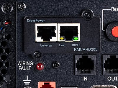 The CyberPower RMCARD205 remotely manages, monitors, and controls CyberPower UPS systems via a standard web browser, command line interface (CLI), or network management system (NMS) connection.