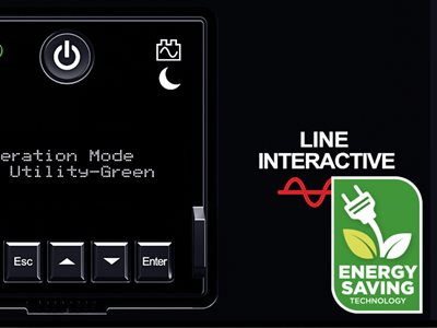 Patented design allows utility power to bypass the UPS transformer, when AC power is stable, which reduces energy consumption, noise, and heat buildup.