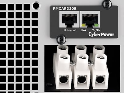The CyberPower RMCARD205 remotely manages, monitors, and controls CyberPower UPS systems via a standard web browser, command line interface (CLI), or network management system (NMS) connection.