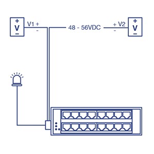 Alarm relay triggered by power failure of primary and/or redundant power