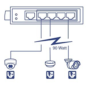 A 90W PoE+ power budget supplies up to four Power over Ethernet devices with PoE+ power