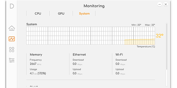 Get instant access to your user settings with the simple, intuitive ConceptD Palette UI. Adjust your color profile, monitor your system, and change your settings with ease. What’s more, you can jump into your Waves NX® 3D and adjust your sound settings from the Palette UI.