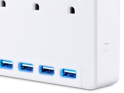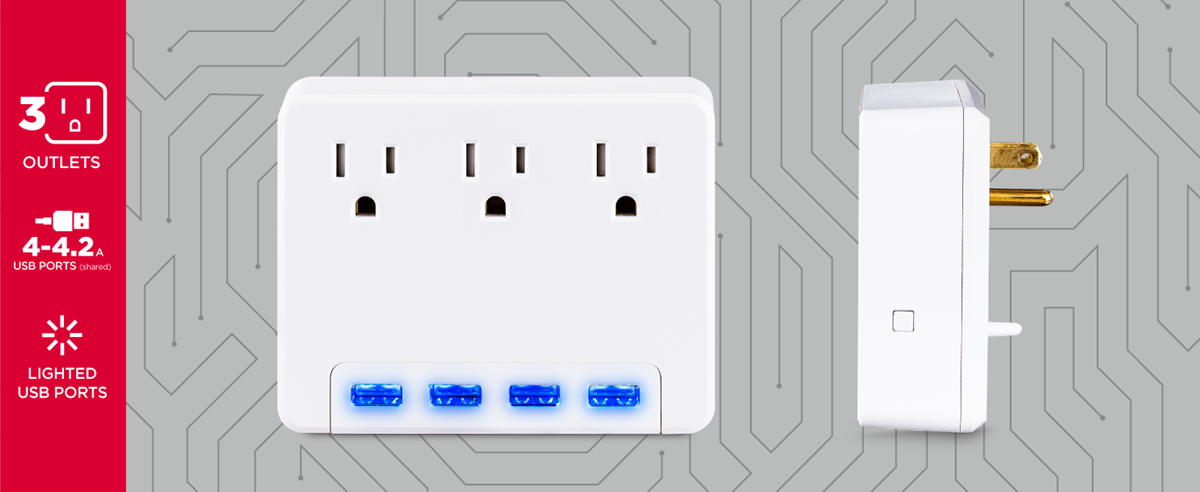 The lighted USB plugs make it easy to locate charging ports for smartphones, tablets, gaming gear and other personal electronics.