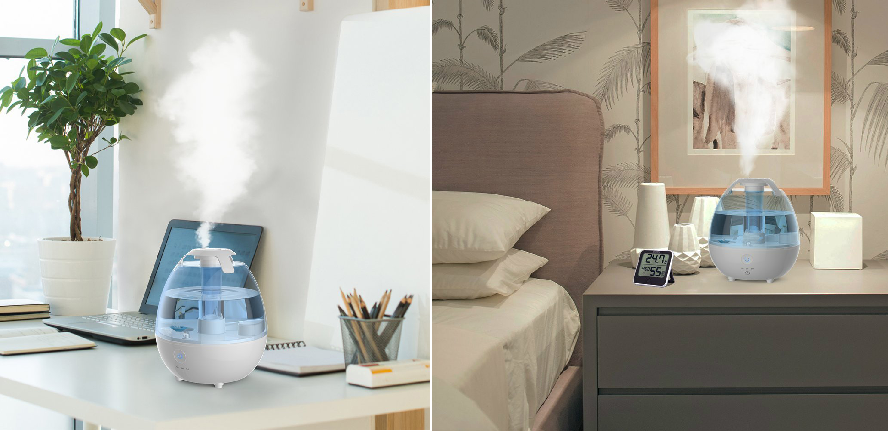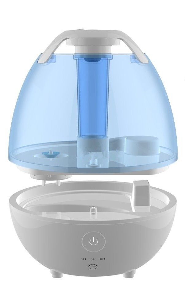 Stylish humidifier safely moisturizes the air for more than 15 hours. Sleek design and low profile easily fits on work station or night stand. Optional blue nightlight offers convenience in dark surroundings. Auto shut-off when water run out to provide safety assurance.