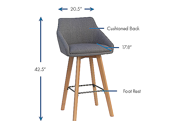 Welcome your visitors with the Lorell Gray Flannel Mid-Century Modern Guest Stool. The guest stool is upholstered with gray flannel fabric for a relaxed yet professional look. The seat and back are cushioned for maximum comfort and the stable base is made of four beech wood legs with adjustable glides. It is perfect for standing height desks or high tables.