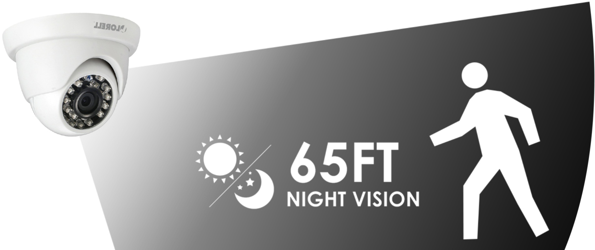 Infrared night vision is an essential feature for security camera, because darkness make intruders more confident. Bullet camera has 36pcs IR LEDs with 100ft night vision, Dome one has 24 pcs IR LEDs with 65ft.