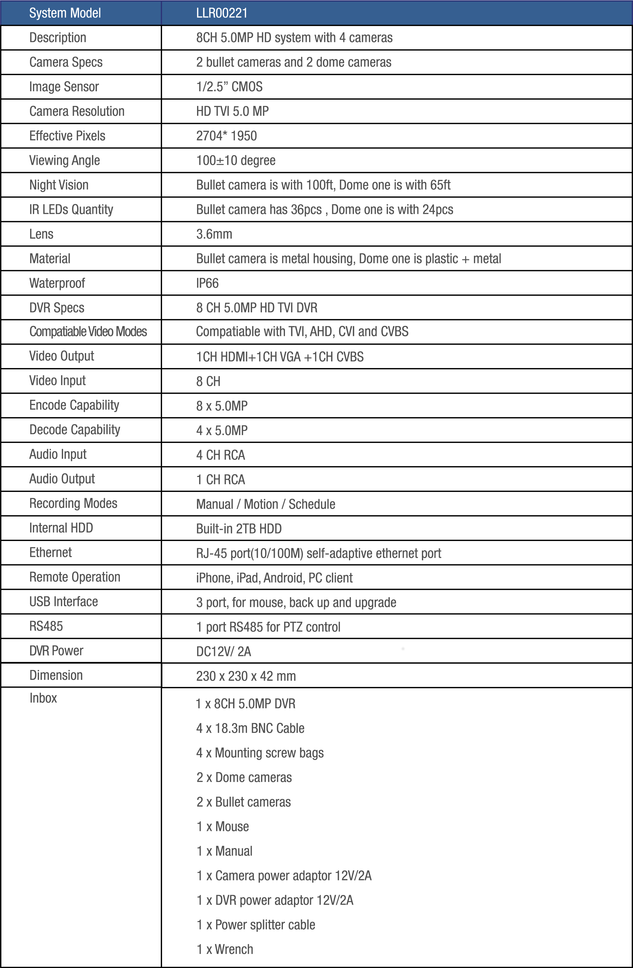 HD 5.0MP outdoor/indoor Security System, 8CH HD 5.0MP DVR with 4 waterproof HD 5.0MP cameras.