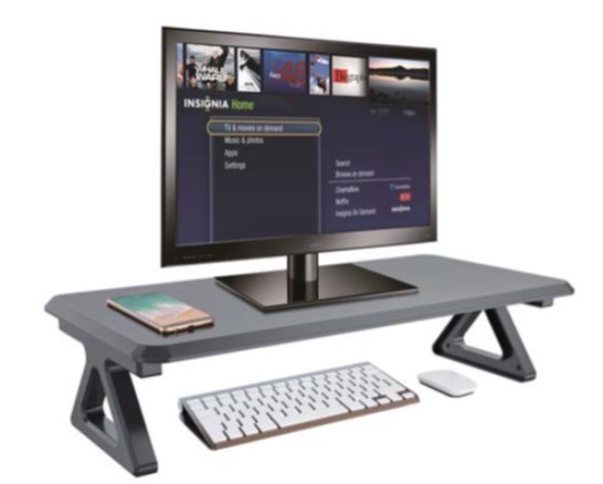 MDF top and plastic base monitor stand has 3 built-in USB ports.