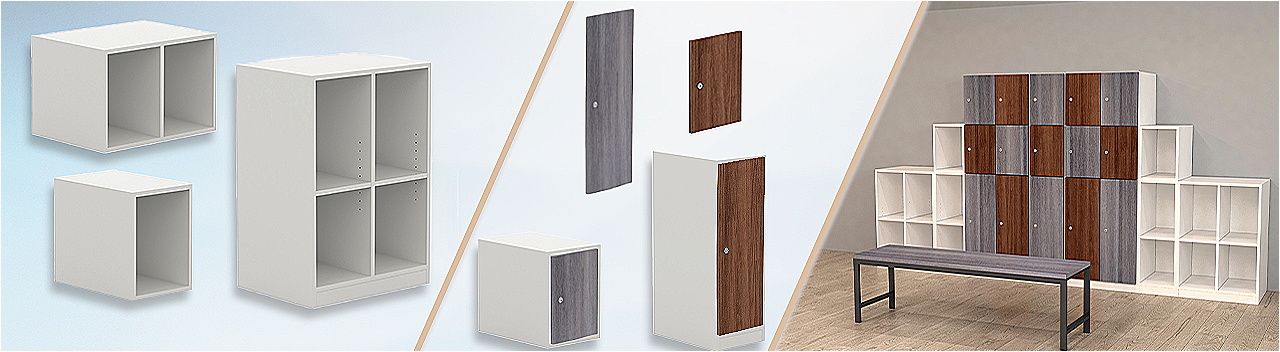 Lorell laminate storage units can be used as open cubby or as secure lockers with optional doors and locks. There is no need to struggle with prefabricated, bulky storage units. You can start with a single or a double locker base and add additional cubbies to build to your requirement.