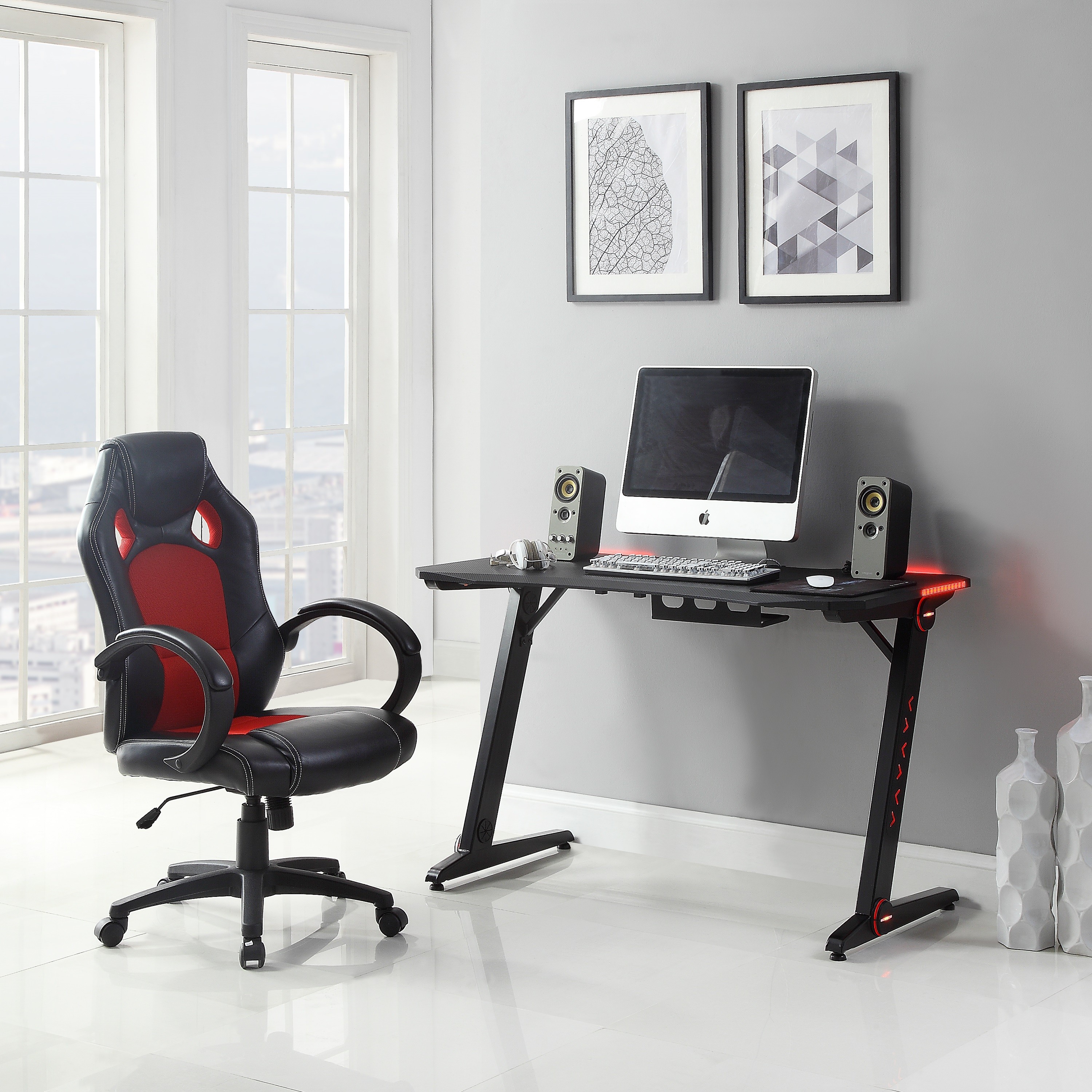 RGB LED lighting inside leg frame and around desktop. Use the remote control to change colors and control the brightness