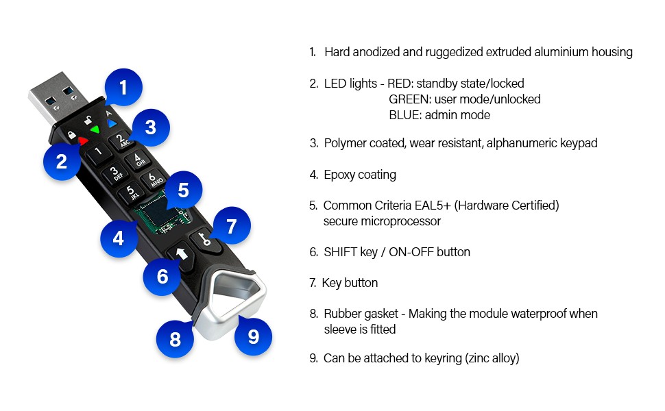 The iStorage datAshur PRO2 is the world’s first and only PIN authenticated, hardware encrypted USB flash drive to incorporate a Common Criteria EAL 5+ (Hardware Certified) secure microprocessor that is certified to FIPS 140-2 Level 3!