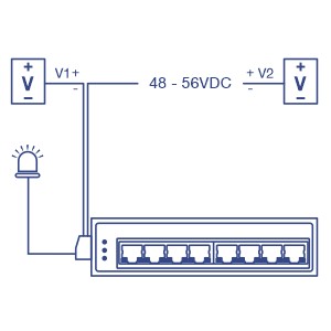 Dual power inputs provide redundant power with overload current protection, and an output alarm relay to indicate input power failure