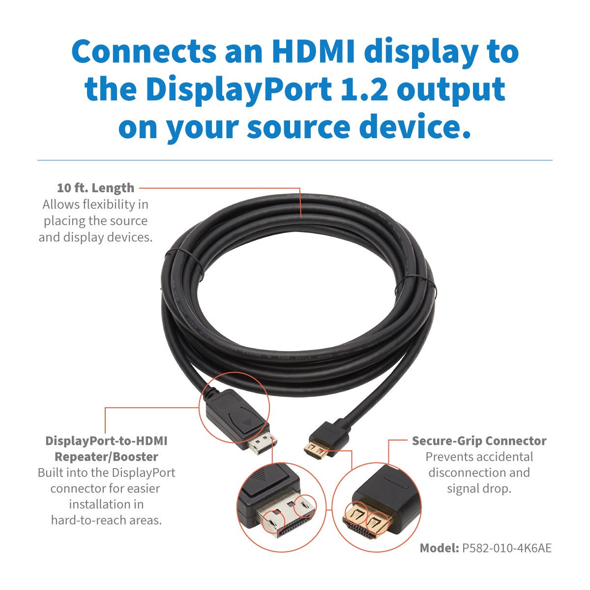 Having a cable come loose accidentally can mean costly and time-consuming signal loss. The latching DisplayPort and gripping HDMI connectors help you avoid such danger, protecting your audio/video transmission by maintaining a secure link without failure.
