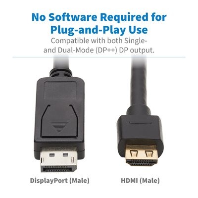 Tripp Lite’s DisplayPort to HDMI Adapter helps you transmit digital audio and 4K video from the DisplayPort 1.2 output on your desktop computer, laptop or other compatible device to a 4K HDMI-enabled television, monitor or projector. It’s ideal for working in high-definition photography, videography or cinematography, as well as streaming video for digital signage in crystal-clear 4K.