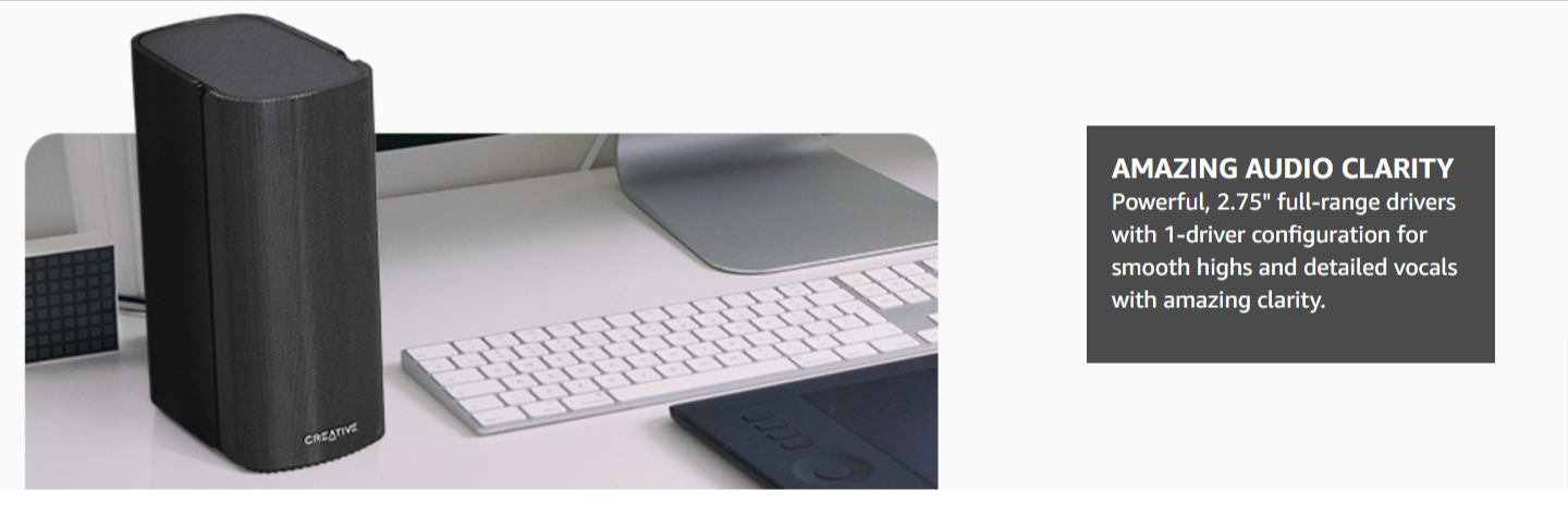 Consider this your well-deserved step-up from your computer and laptop audio. We’ve spent countless man (and ear) hours on its acoustics profile to achieve a wide and lifelike soundstage with an incredible depth that goes beyond the actual speakers.