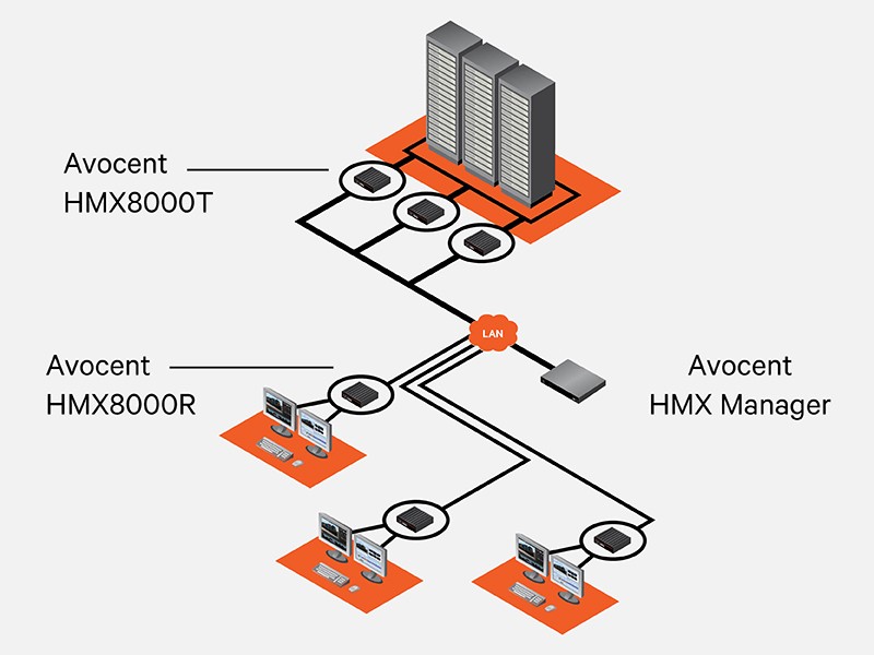 These Vertiv Avocent HMX8000 KVM systems facilitate the creating and editing high-quality broadcast and professional video productions by providing uncompromised video quality or control. The HMX 8000 KVMs offer 4K video capability and ability to transfer information through fiber at 10Gb. The HMX8000 provides flexibility in allowing critical computing hardware that resides in a secure and temperature-controlled environment to remain secure without compromising desktop experience.