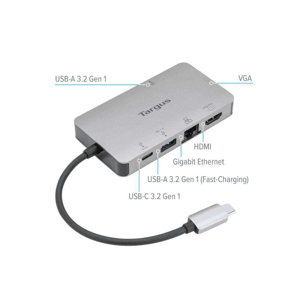 Turn your laptop into a workstation with the compact USB-C DP Alt Mode Single Video 4K HDMI/VGA Docking Station with 100W PD Pass-Thru. Connect your USB-C-enabled devices to a single HDMI or VGA display, while also connecting to a Gigabit Ethernet network, and plugging in your key peripherals – like mice, keyboards, flash drives or hard drives – into the USB-A and USB-C ports. You can even keep your laptop charged and powered by connecting your laptop’s USB-C power adapter to the USB-C port on the dock. It supports up to 100W (20V/5A) charging max. This dock also provides transfer speeds up to 5Gbps per port. Compact and lightweight, it’s easy to take it along with you anywhere you go.