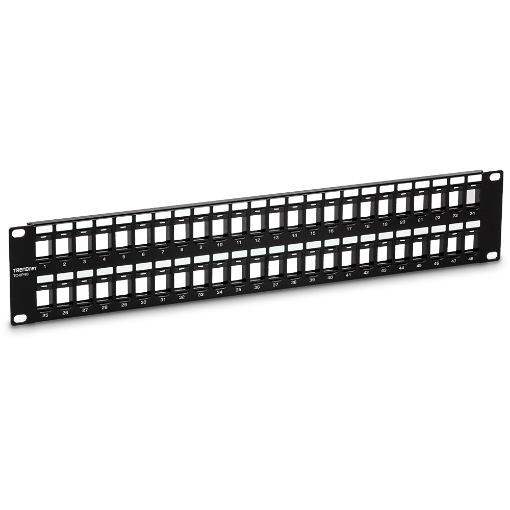 The 48-port blank 2U keystone patch panel is designed for use with TRENDnet's Cat6 keystone connectors (sold separately).