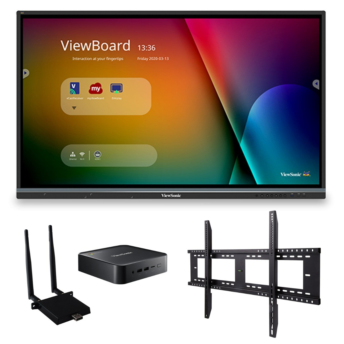 Ideal for education environments, this all-in-one ViewBoard Bundle includes a 65” ViewBoard IFP6550 4K interactive flat panel, a VB-WIFI-001 WiFi and Bluetooth adapter, a NMP760 Chromebox, and a WMK-047 wall mount.