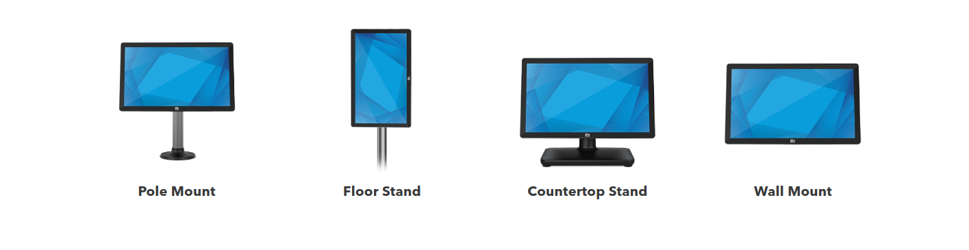 EloPOS is designed with the flexibility to be mounted however you desire. With a standard VESA mounting system,and optional pole and self-service stands, EloPOS offers the modularity you need to create the solution you want. From POS terminals to self-service checkout, the EloPOS can be configured to deliver maximum impact.