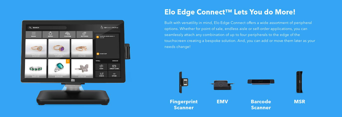 The EloPOS System is designed to offer flexibility across environments. Whether you need a fixed-lane point of sale system or a self-order solution, EloPOS can help ensure that every touch delivers the experience your employees need and your customers expect.