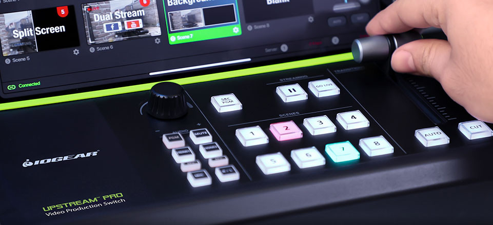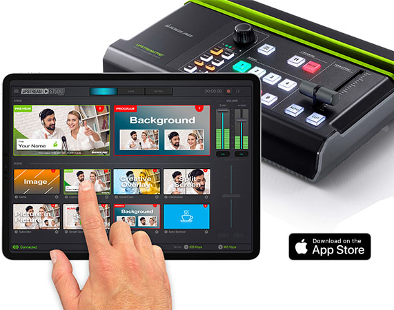 The UpStream™ Pro Video Production Switch is a 6-in-1 solution that combines and simplifies the hardware and software tools you need to livestream like a pro! Along with UpStream Studio™, a robust iPad app, you can control, preview and monitor live video, record, edit and add a variety of professional effects that enhance your program content.
