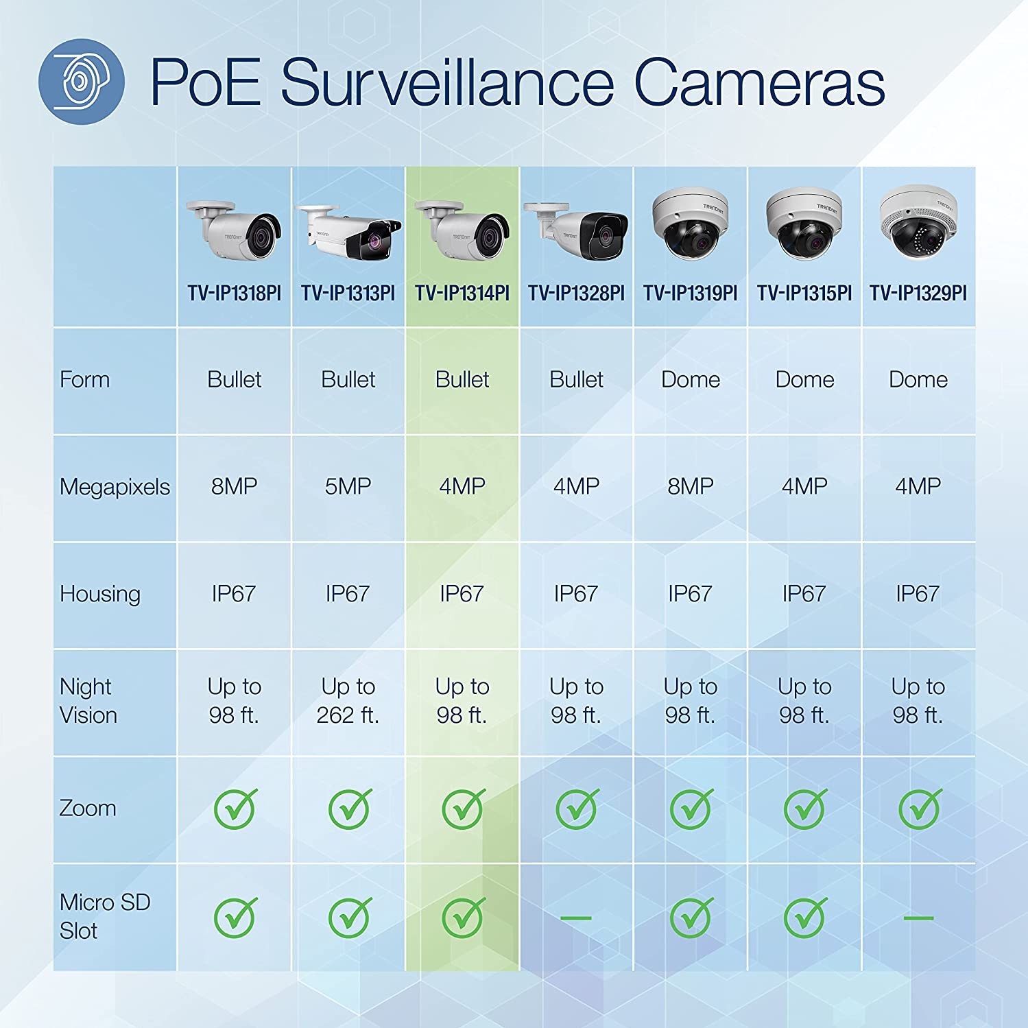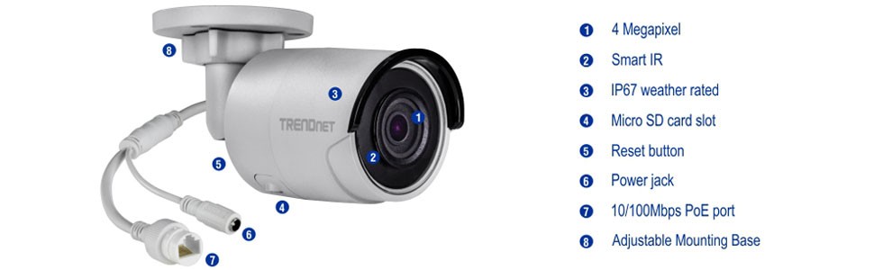 PoE offers cost savings and the flexibility to install this night vision 4MP IP camera up to 100m (328 ft.) from the PoE source equipment.