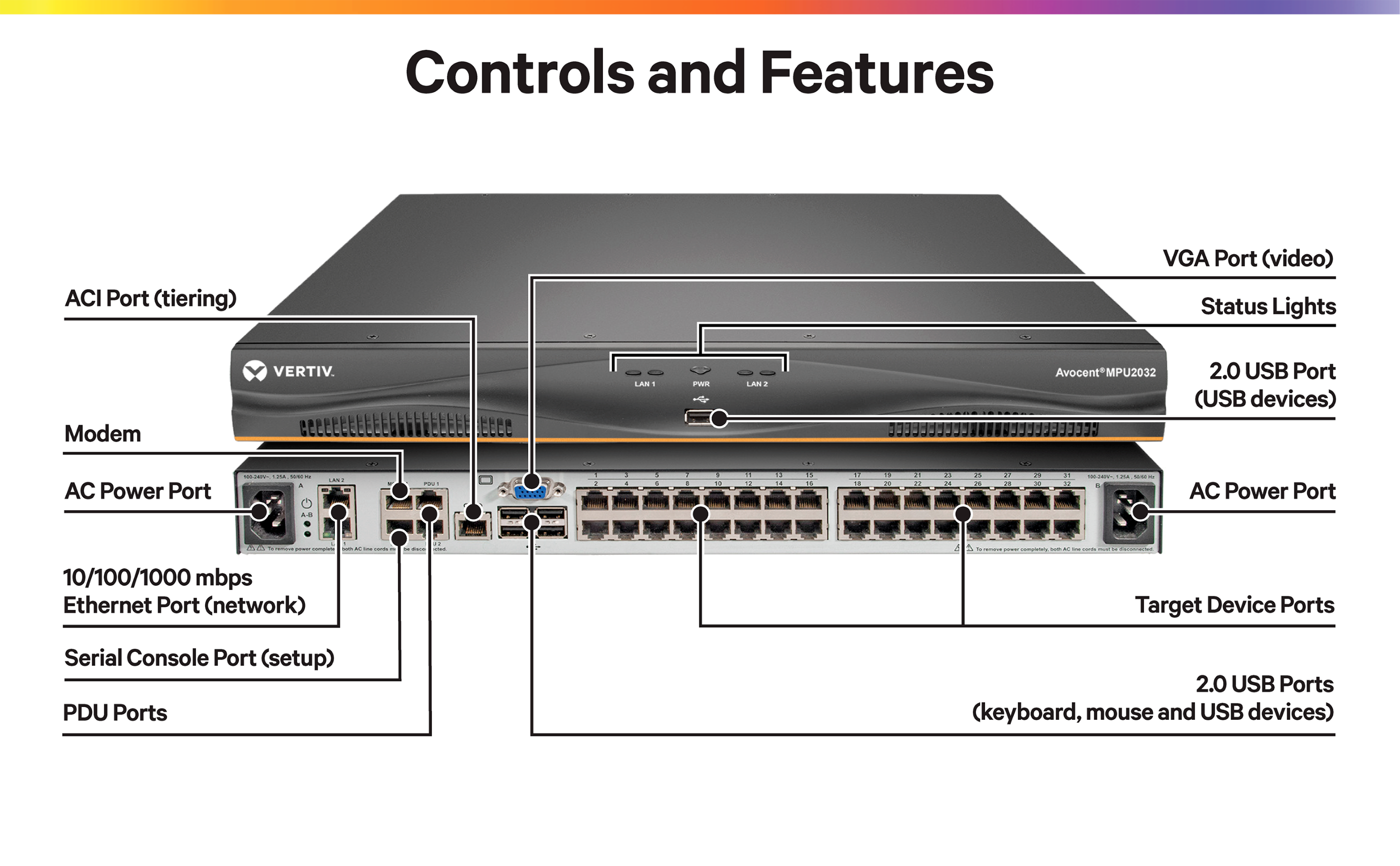 Avocent MPU KVM Switches reduce the time required to remotely diagnose, reconfigure, repair, or restore servers as well as network devices and other hardware with serial configuration and/or management consoles. Complementing in-band tools create a more complete remote management solution to access servers and network equipment at remote locations. Additionally, the switches are compatible with Vertiv Avocent DSView 4.5 management software.