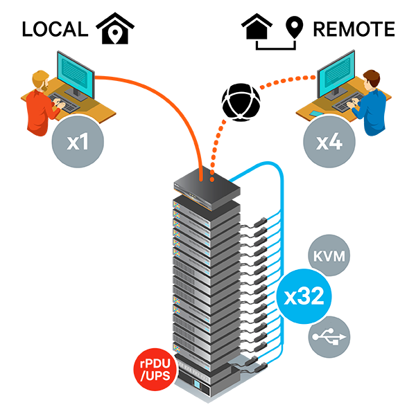 Reduce the need to physically enter the data centers for local access and control. The Avocent MPU provides remote users the capabilities of a direct physical connection from anywhere to KVM, USB, and serial ports of servers and other IT equipment. Using the virtual media capabilities of the Avocent MPU, the provided smart card reader can be mapped from a desktop PC out to a remote server while still meeting advanced security requirements.
