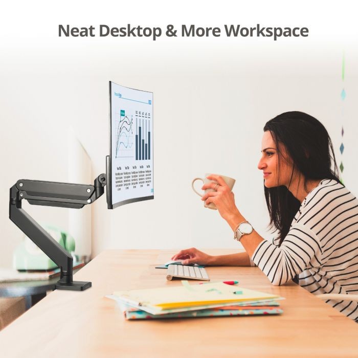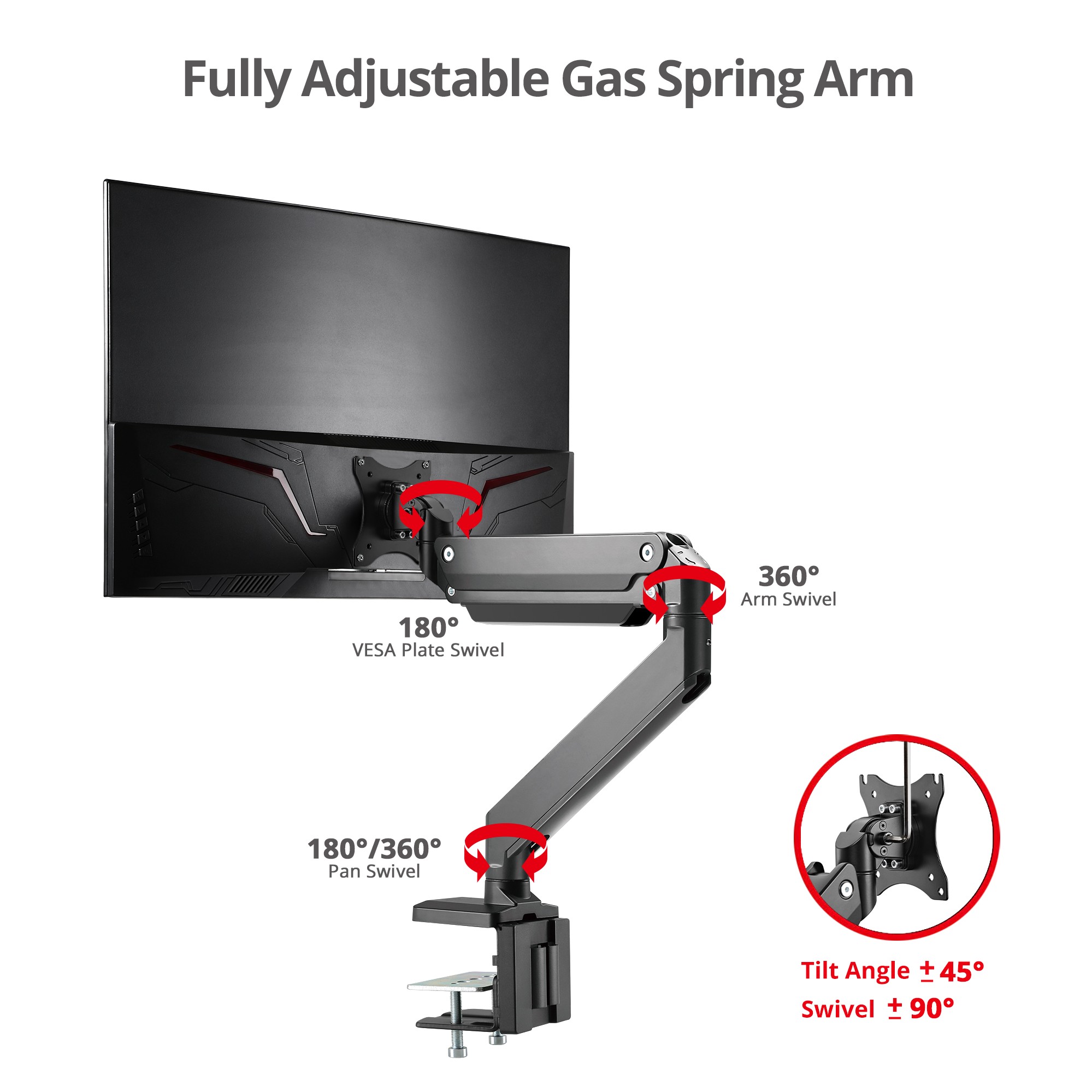 Single Monitor Heavy-Duty Premium Gas Spring Desk Mount - 17" to 43", VESA 75x75, 100x100, 200x200mm