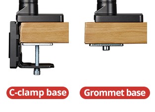 The two options to mount this desk arm on the table, C-clamp and Grommet bases are both included in the package for a quick and easy installation