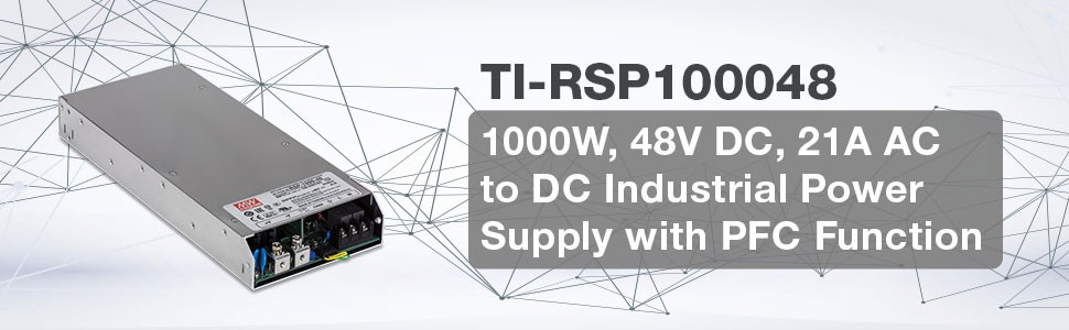 TRENDnet's AC to DC Industrial Power Supply, model TI-RSP100048, supplies up to 1000W (48V DC, 21A) of power to industrial equipment, such as PoE switches and WiFi access points. This industrial power supply comes with active PFC and overload current protection