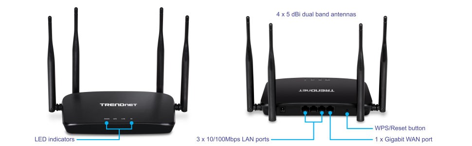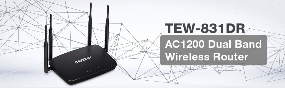 TRENDnet's AC1200 Dual Band WiFi Router, model TEW-831DR, is a high-speed wireless ac router designed to handle multiple HD streams in a busy connected home. This dual band wireless ac router creates two concurrent wireless networks—a high performance 867Mbps wireless AC network, and a 300Mbps wireless N network for wireless device connections. For added convenience, the wireless networks are pre-encrypted out of the box.