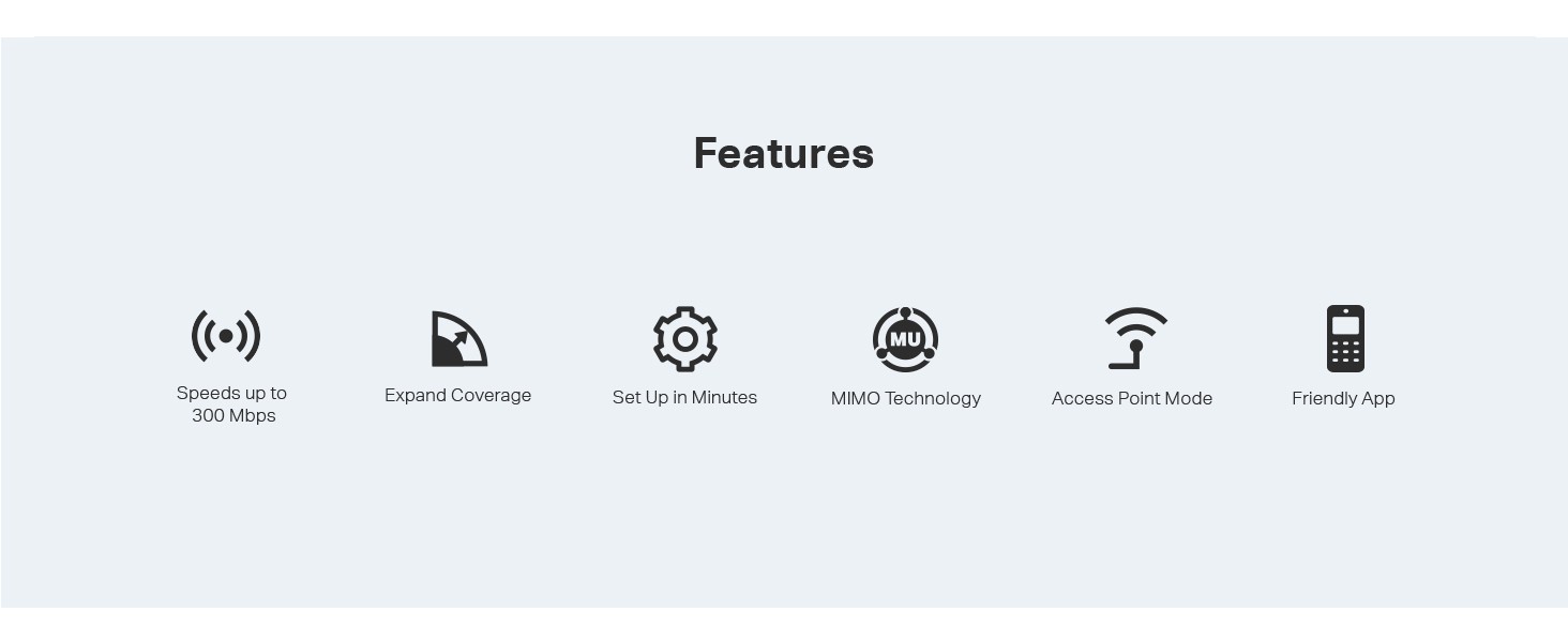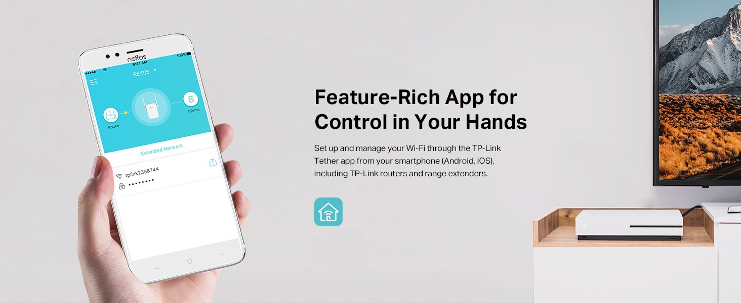 The RE105 expands your current WiFi coverage using specially designed antennas, perfect for web browsing and watching content online.