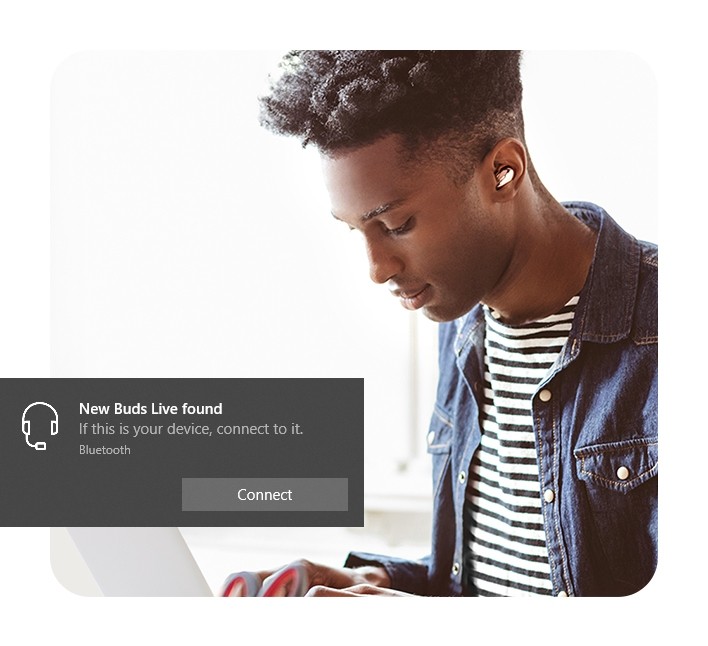 Put Galaxy Buds Live in pairing mode near a PC and get your best work done. Use Windows 10 PC's Swift Pair for an easier, simpler way to connect the two.