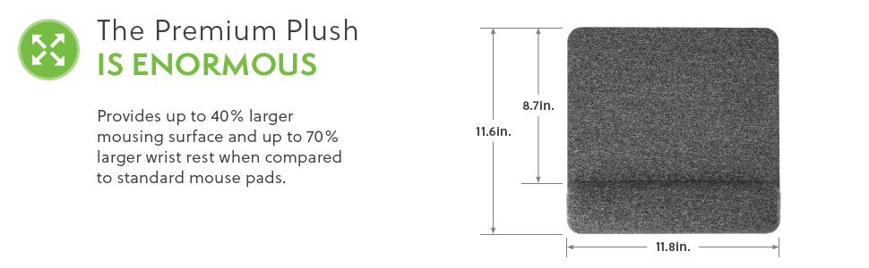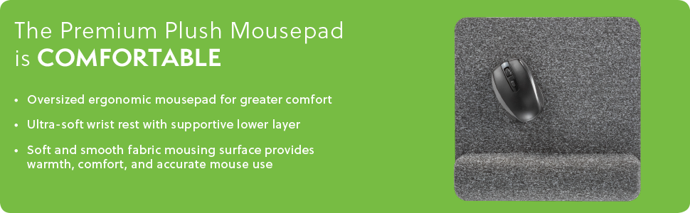 Oversized mousepad with ultra-soft wrist rest and large fast-tracking fabric surface. Wrist rest features multi-layer foam construction for maximum comfort.