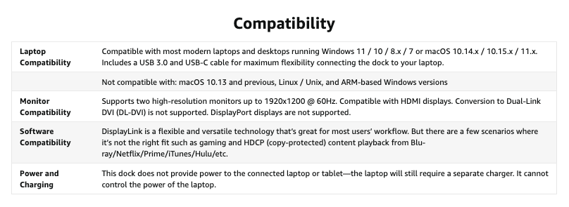 High-Resolution DisplaysGet more screen space for more productivity. High resolution HDMI displays will change the way you manage your out of control tabs and your workflow. No more grainy visuals and tiny screens. Watch videos on clear and sharp 2K 60Hz screens (1920x1200 @ 60Hz). Expand your screen real estate with this dock and cut down the time it takes to work on those highly productive tasks. |