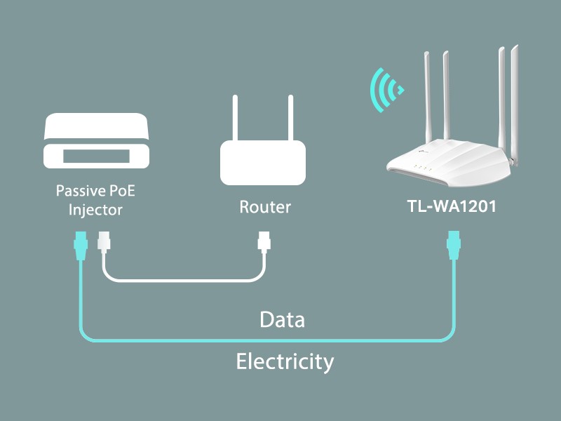 TL-WA1201 features a Power over Ethernet (PoE) port that allows your Ethernet cable to carry electrical power and data simultaneously, making deployment effortless and flexible. The simple mounting design makes it easy to attach the Access Point to any wall or desktop. Passive PoE Injector is included in the package.