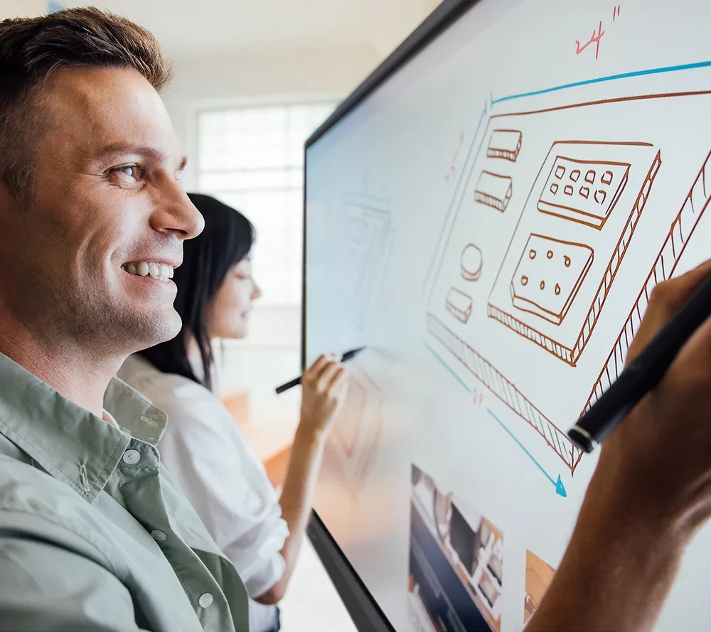 Featuring huge touchscreens, ViewBoard displays let multiple users write, edit, and draw onscreen for dynamic presentations and creative brainstorming. Easy-to-use annotation software makes interactivity a snap, and empowers users with instant collaboration and content sharing across an office, across campus, and across the globe.
