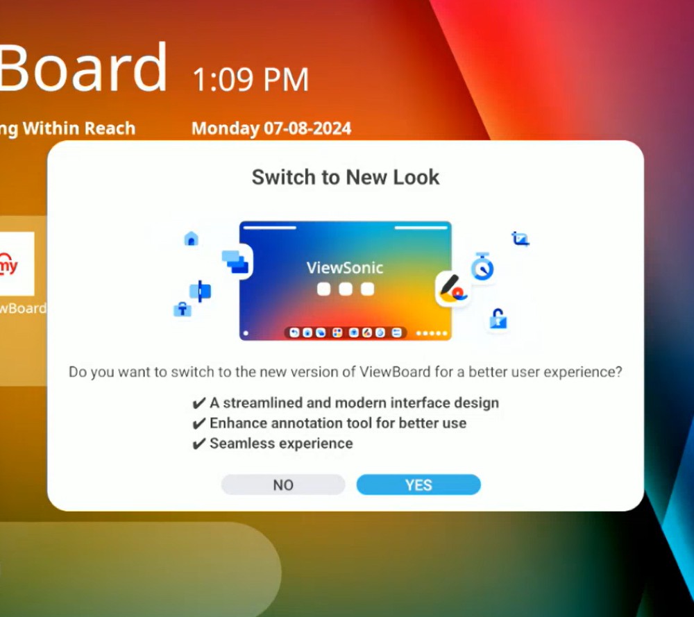 The upgraded ViewSonic vLauncher TM v3.0 Interface offers quick access to essential tools like myViewBoard®, cloud storage, and web browsing through a single, secure login. Customize your workspace with a redesigned desktop, improved side toolbar, and direct cloud access to Google Drive and OneDrive.