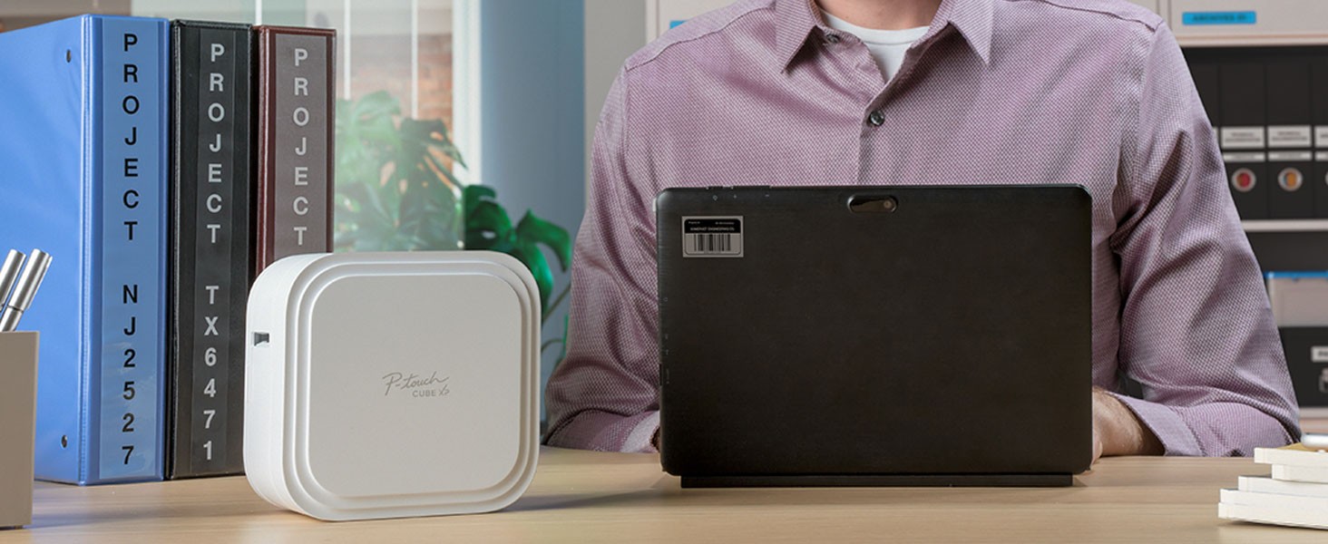 Use P-touch TZe-M65 White Print on Matte Clear Black Label Tape to create the perfect labels for asset management, signage, barcodes, pricing, shelf labels, organizing and more.