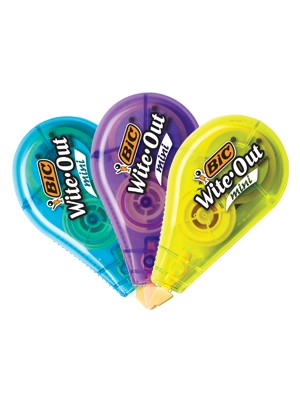 Fix mistakes fast with BIC Wite-Out Brand Mini Correction Tape! Suitable for lefties and righties, These brightly-colored correction tape dispensers are compact enough to fit in any bag. The correction tape goes on dry, allowing you to make instant corrections with no mess and no waiting time, while the convenient size allows hands of all sizes to make quick and accurate corrections. Each convenient dispenser contains 16.4 feet (197 inches) of white correction tape.